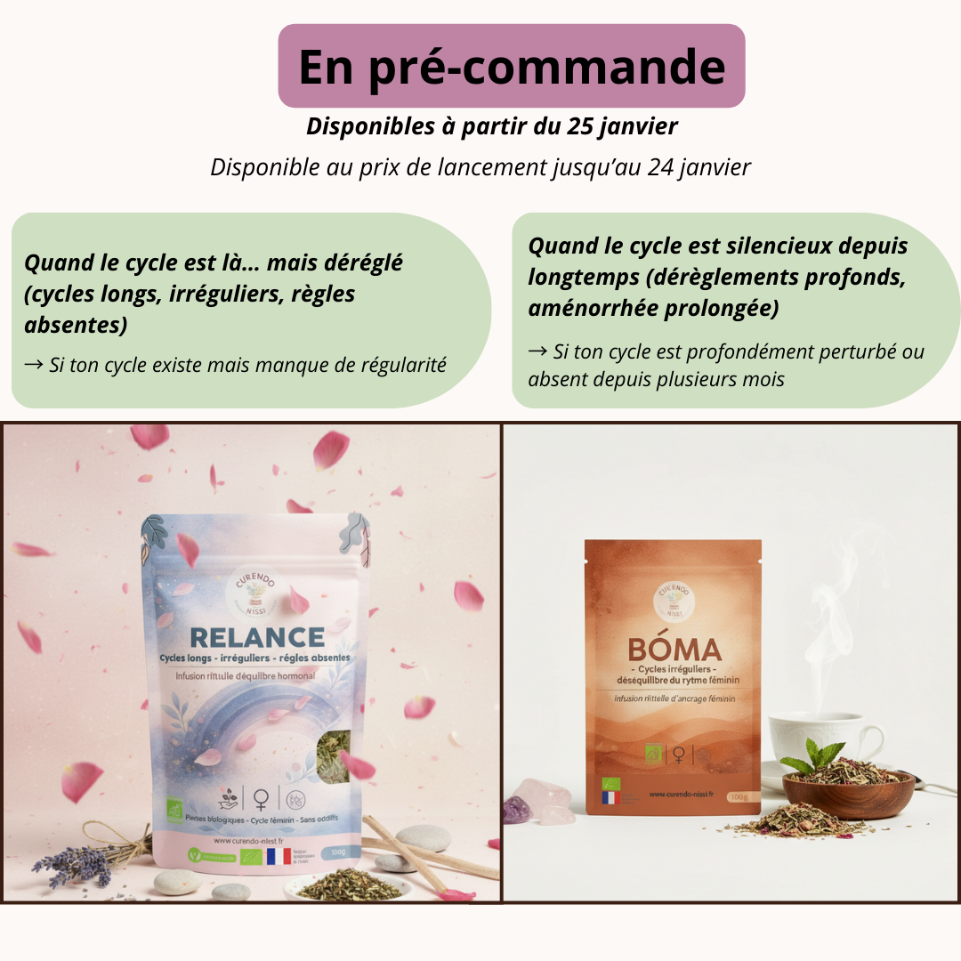 Parce qu'un cycle se dérègle, l'accompagnement doit être adapté. Ces cures ont été conçues pour soutenir le rythme féminin avec respect et progressivité.